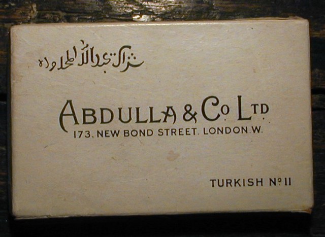 In the 1960s, the age of gourmet cigarettes provided for connoiseurs, when in funds, I would smoke Abdulla cigarettes – in particular No11 Turkish, or No16 Eygptians, both oval and gold-tipped. They were of course supplied in lovely card boxes.