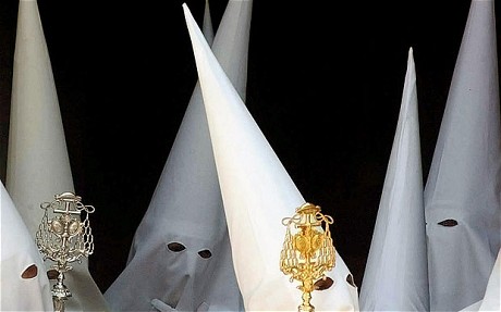 As a puzzled young mother said to me: How do you explain what all the chocolate bunnies, crucifixions and fireworks mean to a two year old boy. How do you? I suggested she crucifies the chocolate bunny and sends him up in a rocket. He’d understand that – sorry that’s rather macabre. No seriously, of the Spanish fiestas, and there is enough of them in Spain, Semana Santa or Holy Week is the biggest orgy of all, celebrated throughout Spain. An orgy of public penitence, street processions, white pointed hoods and giant wooden effigies of the crucified Christ figure, tears of blood dripping from his agonised face or alternatively the brightly statued images of the Virgin Mary and Child, carried by dozens of inebriated men shuffling down narrow streets, accompanied by heavy drums and trumpets with the occasional outburst of a solo flamenco singer – and it is very dramatic. Let’s not forget the obligatory and enormously expensive firework displays – the biggest bangs you will hear outside war time and billows of smoke, as if a bomb had just gone off in a Beirut street.